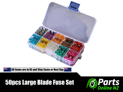 50pcs Large Blade Fuse Assortment Box 2A 3A 5A 7.5A 10A 15A 20A 25A 30A 35A